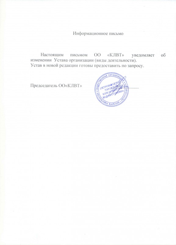 27.06.2025 Новый устав КЛВТМинюст зарегистрировал новый устав клуба и он вступил в силу, с этого момента мы начинаем жить согласно новому уставу от 10.06.2025. |