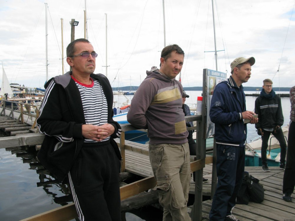 День начинался с тишины - без малого полный штиль. На собрании капитанов звучали предложения отложить гонки на следующий день – решили все же стартовать, и стартовать напротив набережной – наш небольшой подарок городу. Из Клуба шли на «железном фордаке», лодки без моторов, традиционно тащили на «галстуке». Пока выставляли дистанцию и ждали опоздавших, с озера пришел ветер и все состоялось.